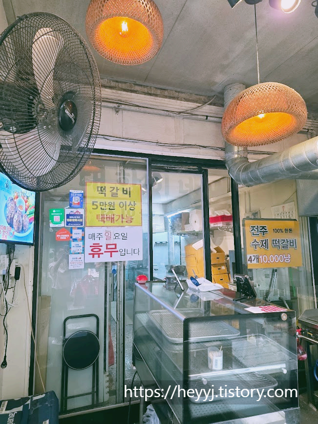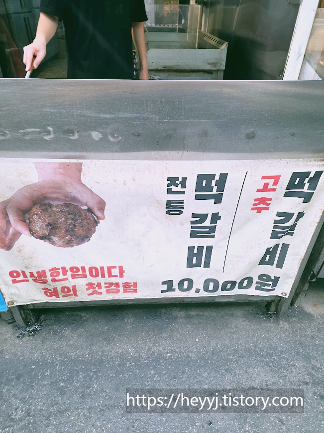 큼지막하게 지글지글 구워지는 떡갈비에서 나는 육즙 냄새에 나도 모르게 줄 서게 되었고, 결국 전통 떡갈비 4개 10,000원 GET!