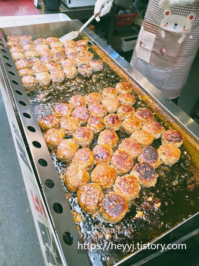 시장 입구를 지나자마자 사람들의 발길을 붙잡은 건 커다란 떡갈비 구이판이었다.