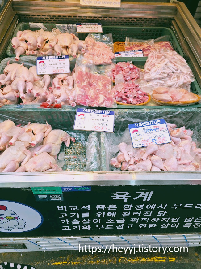 닭고기 전문 코너에서는 1kg 기준 8,000원~10,000원대의 가격으로
