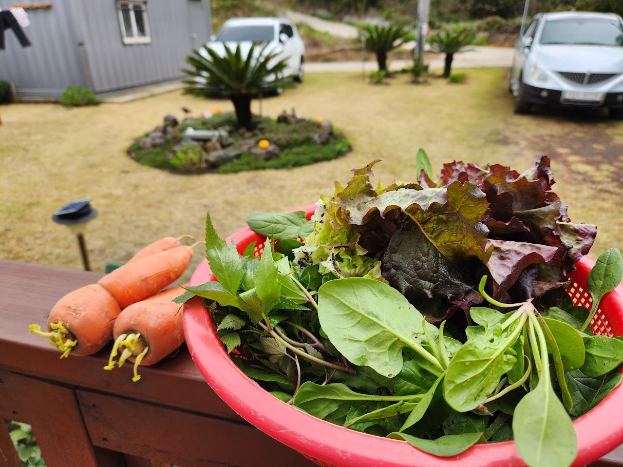 주인 아주머니가 키우시는 당근, 가지, 상추, 당귀 등
